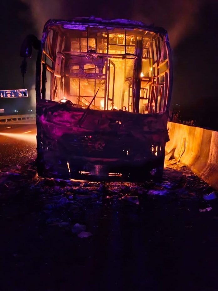 शॉर्टसर्किटने खुराना ट्रॅव्हल्स जळून खाक सुदैवाने जीवित हानी टळली