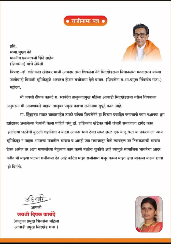 नेत्याच्या विखारी भूमिकेमुळे शिवसेना महिला आघाडी तालुका प्रमुखांचा राजीनामा
